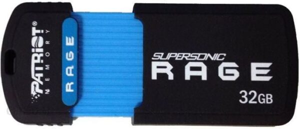 Supersonic Rage XTto przenośna pamięć USB marki Patriot. Pojemność nośnika wynosi 32 GB. Urządzenie skonstruowane w formie wysuwanego złącza USB. Poprzez elementy z gumy pamięć jest lepiej chroniona przed czynnikami zewnętrznymi. Pamięć wykorzystuje szybkie połączenie USB 3.0 przez co prędkość zapisu danych wynosi 50 MB/s, a odczytu 180 MB/s. Pamięć jest kompatybilna z najpopularniejszymi używanymi obecnie systemami operacyjnymi, takimi jak Windows, Linux 2.4.x, a także Mac OS x 9 i nowsze. Produkt objęty jest pięcioletnią gwarancją producenta.