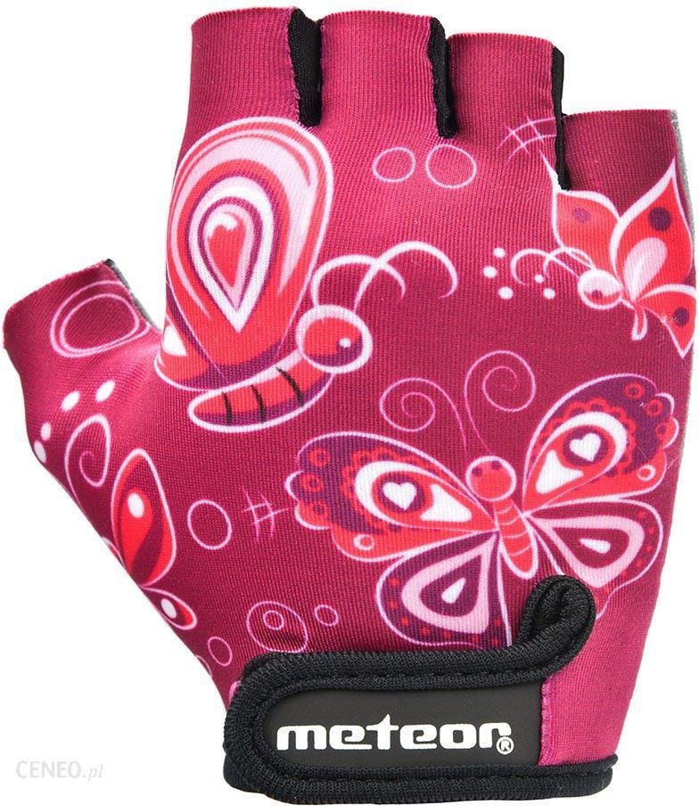 RĘKAWICZKI ROWEROWE METEOR KIDS PINK BUTTERFLIESTwoje dziecko uwielbia jazdę na rowerze? Prezentujemy produkt, który znacznie poprawi komfort jego jazdy oraz pomoże zapobiec powstawaniu odcisków na delikatnej skórze dłoni.Rękawiczki rowerowe marki meteor ochraniają najbardziej wrażliwy obszar dłoni. W wewnętrznej części wykonane są z delikatnej, miękkiej eco-skóry. Materiał uzupełniony jest o piankowe wstawki łagodzące wstrząsy. Część zewnętrzną wykonano z miękkiego materiału z kolorowym nadrukiem.Dzięki zapięciu na rzep rękawiczki są idealne dopasowane w nadgarstku i nie zsuną się w czasie jazdy.Rękawiczki KIDS PINK BUTTERFLIES wraz z kaskiem MV6-2 stanowią doskonały zestaw małego rowerzysty.