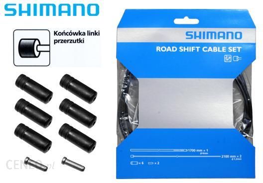 Zestaw linek Shimano nierdzewnych, pancerzy i końcówek do przerzutek szosowych,czarne.Zestaw zawiera:Pancerz Shimano OT-SIS P40 o średnicy 4 mm, długość 1700 mm – 1 szt.Pancerz Shimano OT-SIS P40 koloru czarnego.Linka przerzutkowa ze stali o średnicy 1,2 mm i długości 2100 mm – 2 sztKońcówki linki – 2 szt.Końcówki pancerza Shimano SIS SP40- 6 szt.